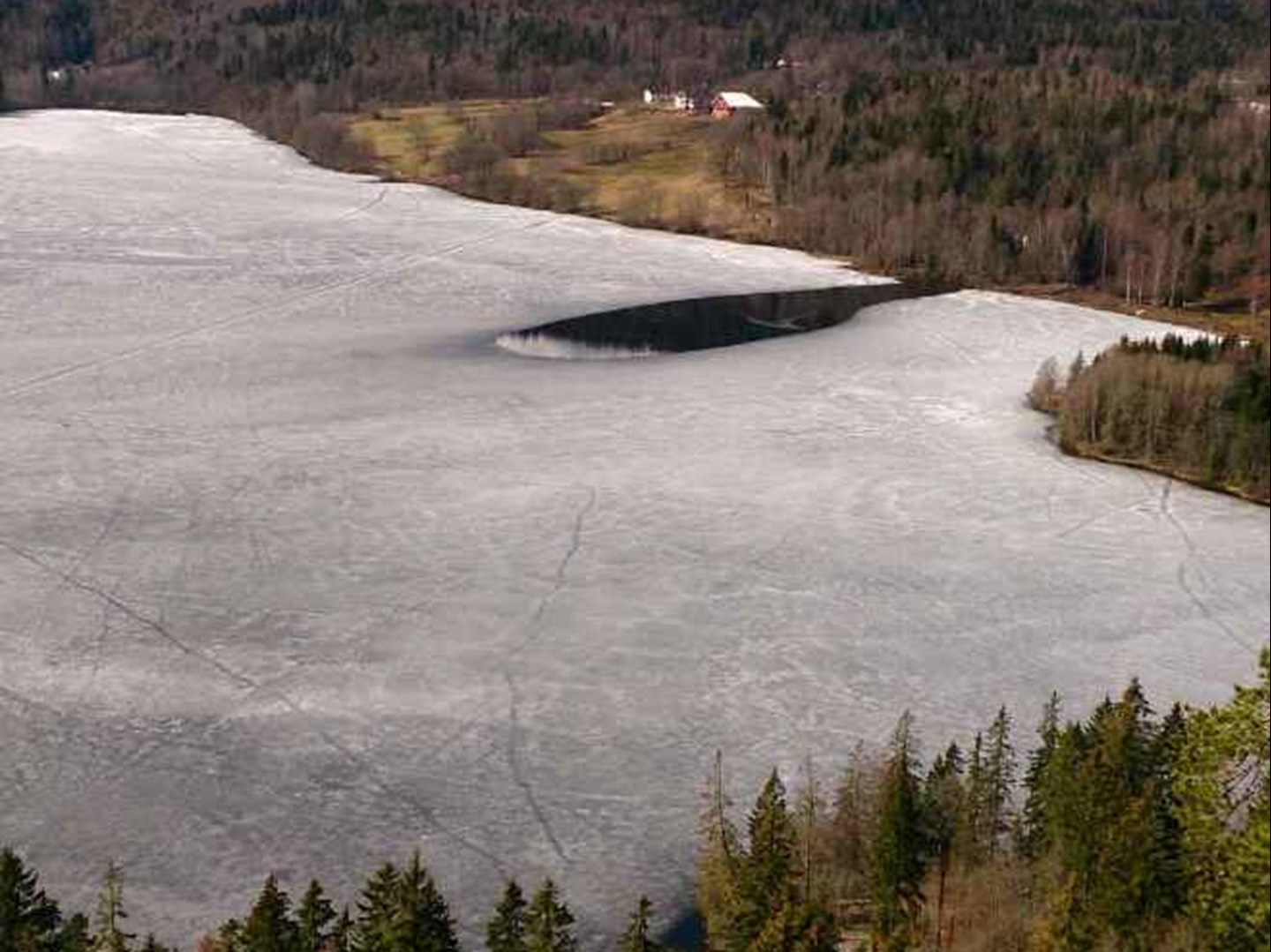 Dette impliserer også at det er helt islagt på målestedet - Hele sjøen isfri: