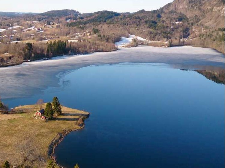 Vannet er isfritt. På våren tillates det noen isrester langs land.