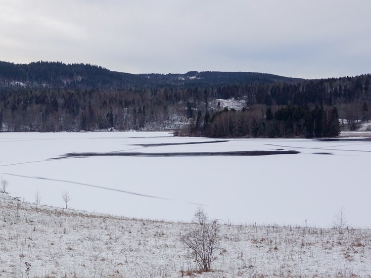 Alt er islagt. Det tillates åpne områder ved innløp og utløp og andre steder på vannet der det nesten alltid er isfritt.