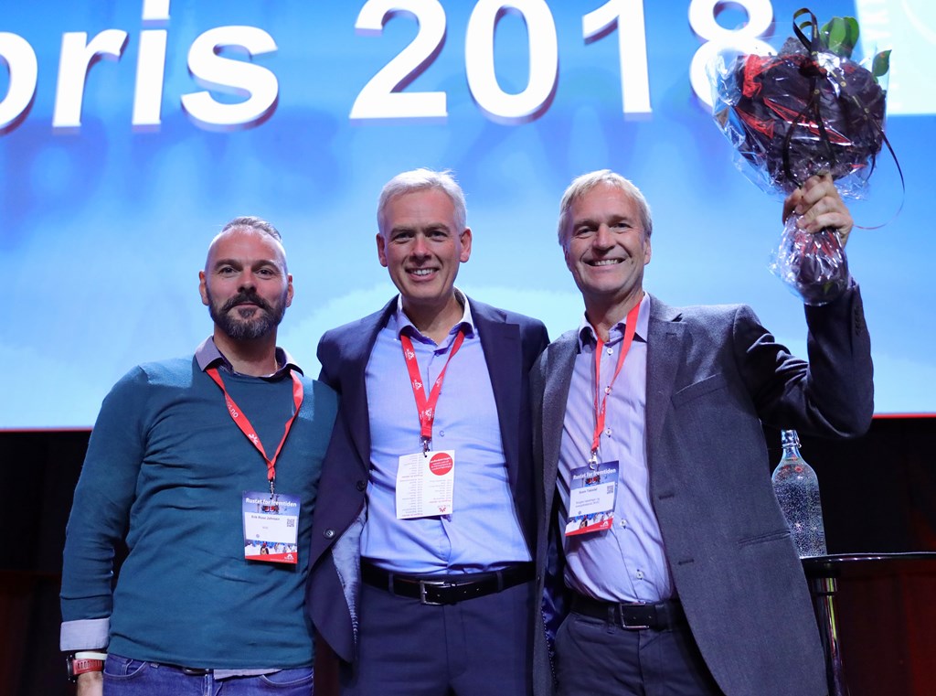 Fra NVE var det Erik Rose Johnsen, prosjektleder Varsom, Svein Taksdal, seksjonssjef Hydroinformatikk og Arne Bjørn Mildal, seksjonssjef Systemutvikling som mottok prisen.