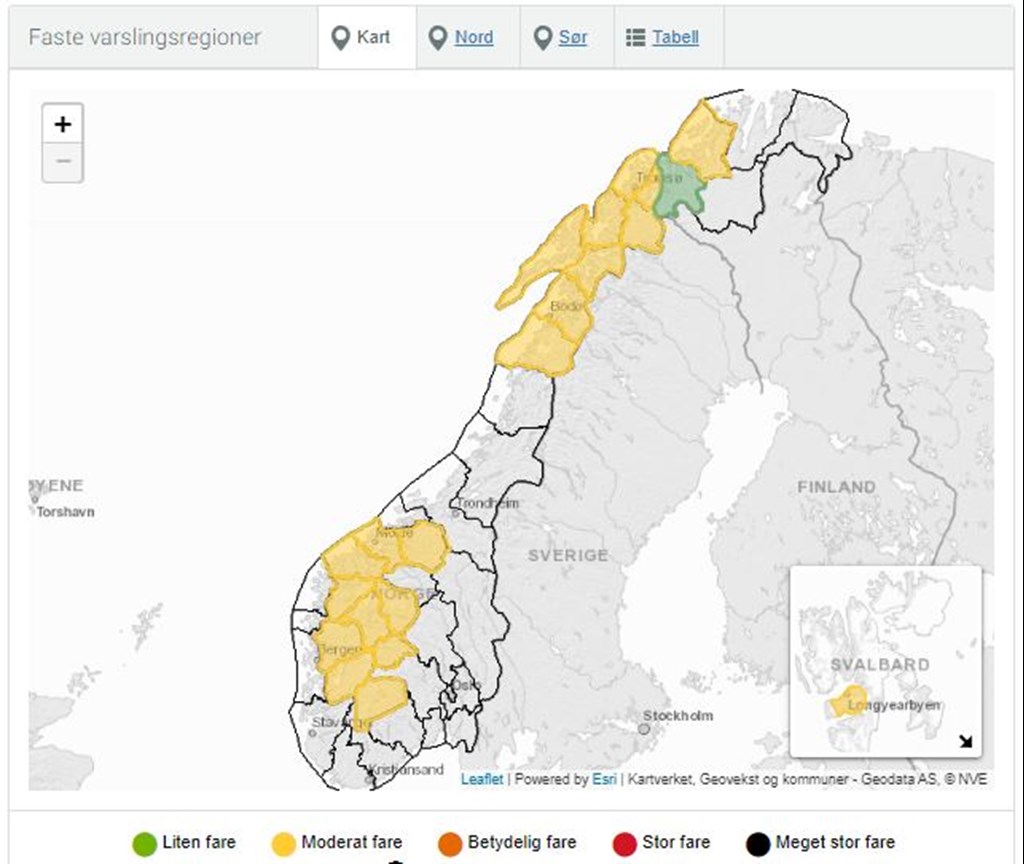 A-regioner har daglige snøskredvarsler gjennom hele vinteren uansett faregrad og observatører som flere ganger i uken sender inn rapporterer om snødekkets oppbygning og stabilitet. I B-regionene publiseres varsler bare når det vurderes som sannsynlig med faregrad 4-stor eller 5-meget stor snøskredfare.