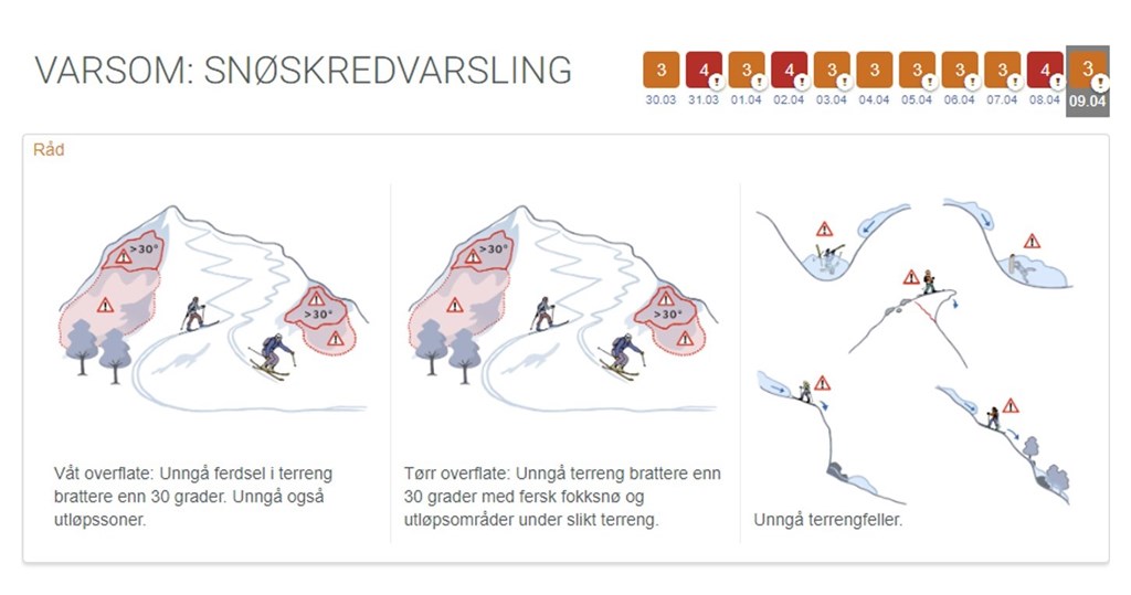 Snøskredvarslene på Varsom.no oppdateres daglig hver dag i påsken og hver dag frem til 31. mai.
