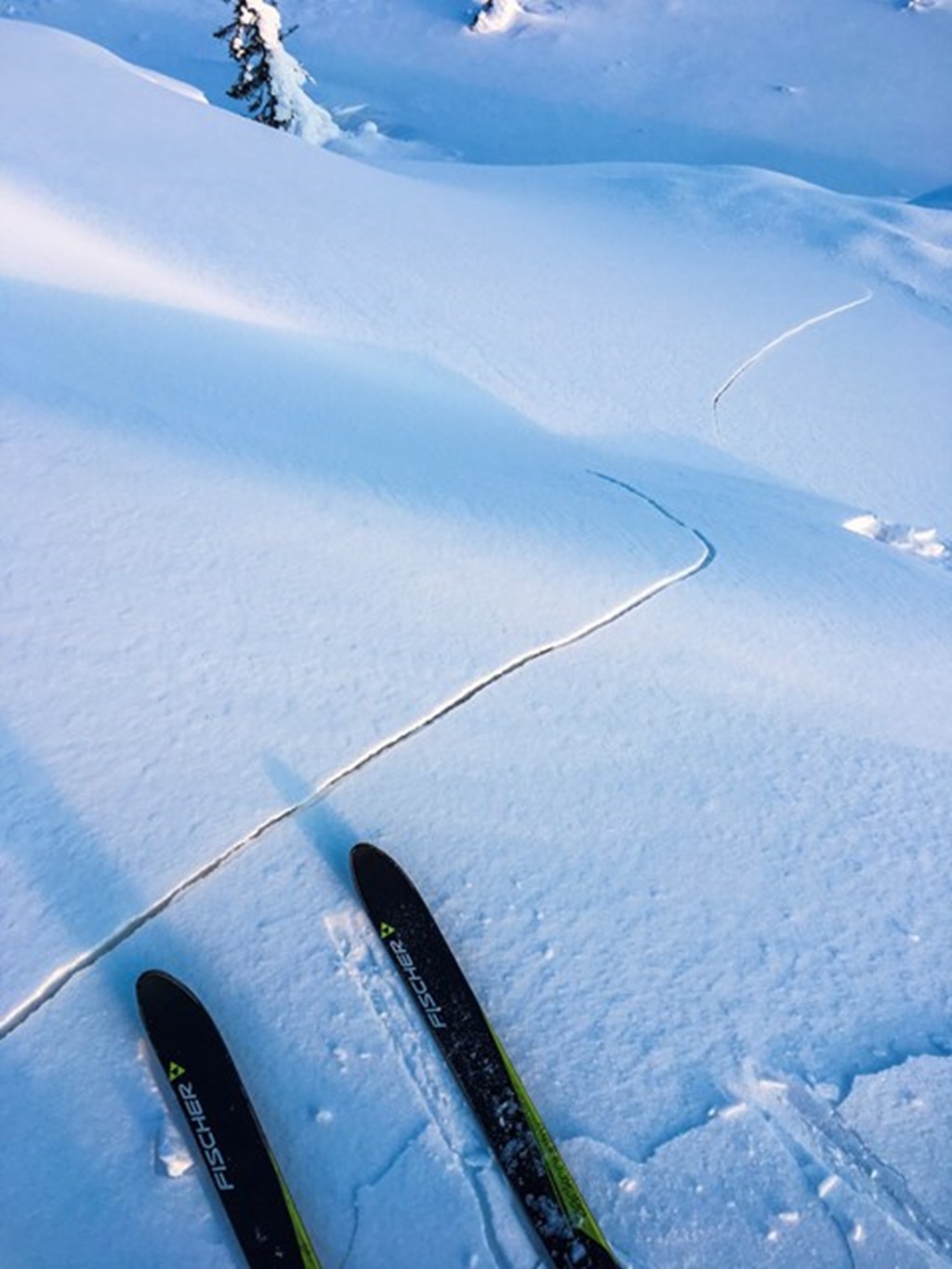 I og omkring skoggrensen må du være spesielt oppmerksom. Her er fokksnøen myk nok til at du kan påvirke det svake laget. Det er også her det har vært flest rapporter om skred og drønn i snødekket den siste tiden. I høyfjellet har fokksnøflakene blitt så harde at det er færre steder du kan løse ut skred.