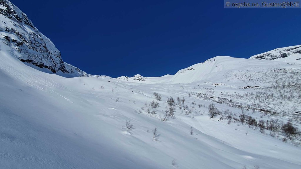 I Nord-Norge vil en solfylt helg føre til at det vil gå skred i den nyeste snøen. Det kan gå enkelte store naturlig utløste skred og mange mindre skred grunnet solinnstråling og temperaturstigning. Planlegg turen med margin og hold avstand til utløpsområder utover dagen.