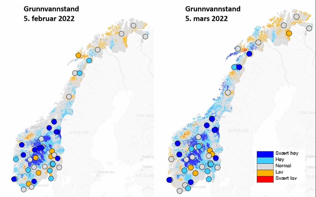 Grunnvannstanden er nå stort sett normal til høy for årstiden i hele landet.