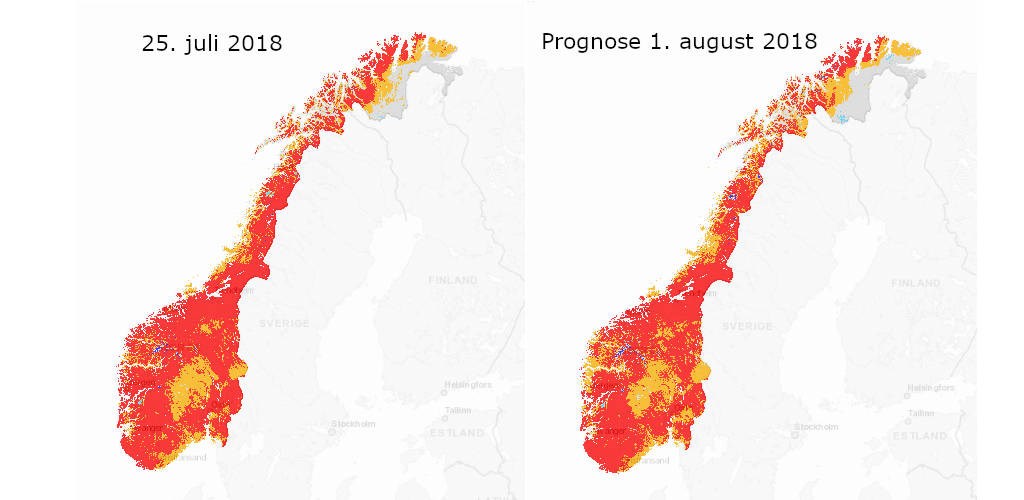 Tørken i Norge. Oppdatert status 25. juli 2018